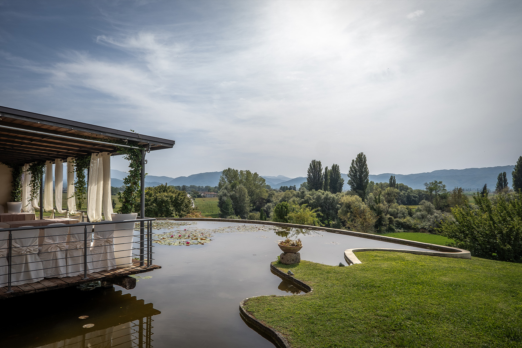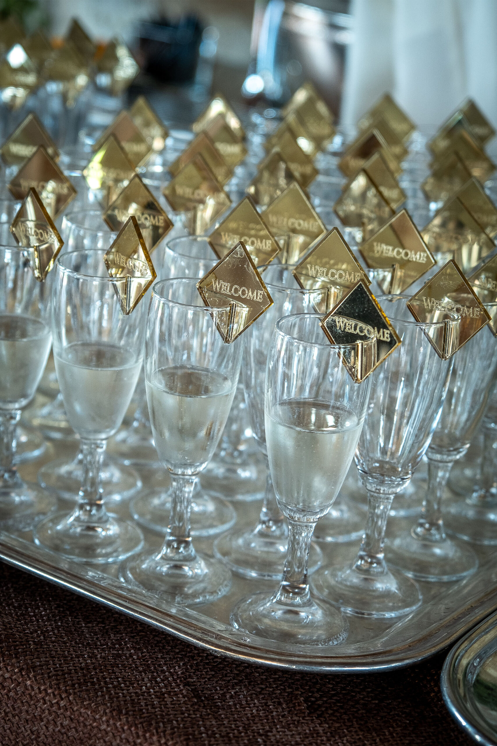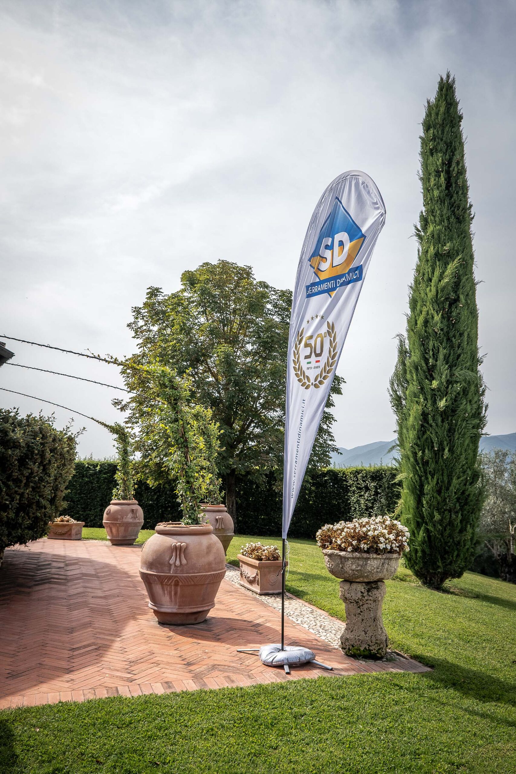 Conosco Serramenti Dinamici da tempo: anni prima avevo curato il matrimonio di Daniela e Angelo. Dopo sette anni vengo ricontattata per un progetto completamente diverso, ma altrettanto significativo. Fondata nel 1973, Serramenti Dinamici è oggi guidata dalla nuova generazione. L’occasione è duplice: celebrare il 50° anniversario dell’azienda e accompagnare simbolicamente il passaggio di quote dalla vecchia alla nuova generazione. L’obiettivo è chiaro: creare un evento corporate elegante, rappresentativo del brand ma capace di trasmettere un’atmosfera familiare e inclusiva, coinvolgendo soci, collaboratori, dipendenti e fornitori. Un evento che raccontasse l’impresa come una grande famiglia. I colori istituzionali, giallo e blu, diventano il filo conduttore dell’allestimento. Per rendere l’esperienza più dinamica, viene introdotto un dress code con “yellow touch”, interpretato liberamente dagli ospiti. L’accoglienza è il primo momento di relazione: per il brindisi di benvenuto, realizziamo tag personalizzati sulle flute, un dettaglio semplice ma identitario, capace di trasmettere subito il senso dell’evento e del brand. La proposta gastronomica segue la stessa logica: un menu territoriale, studiato per valorizzare le origini dell’azienda, con vini selezionati tra etichette locali per equilibrio e riconoscibilità. La musica di sottofondo accompagna l’intera esperienza, mentre il buffet di dolci e gelati chiude la giornata con freschezza, ideale per una calda giornata di settembre. Il momento più significativo arriva con il taglio della torta, personalizzata con logo e colori aziendali, affidato ai soci fondatori. Lo speech intenso e sincero sancisce il passaggio di testimone alle nuove generazioni, emozionando l’intera platea. Un evento che celebra non solo un anniversario, ma una storia imprenditoriale fatta di persone, valori e continuità.