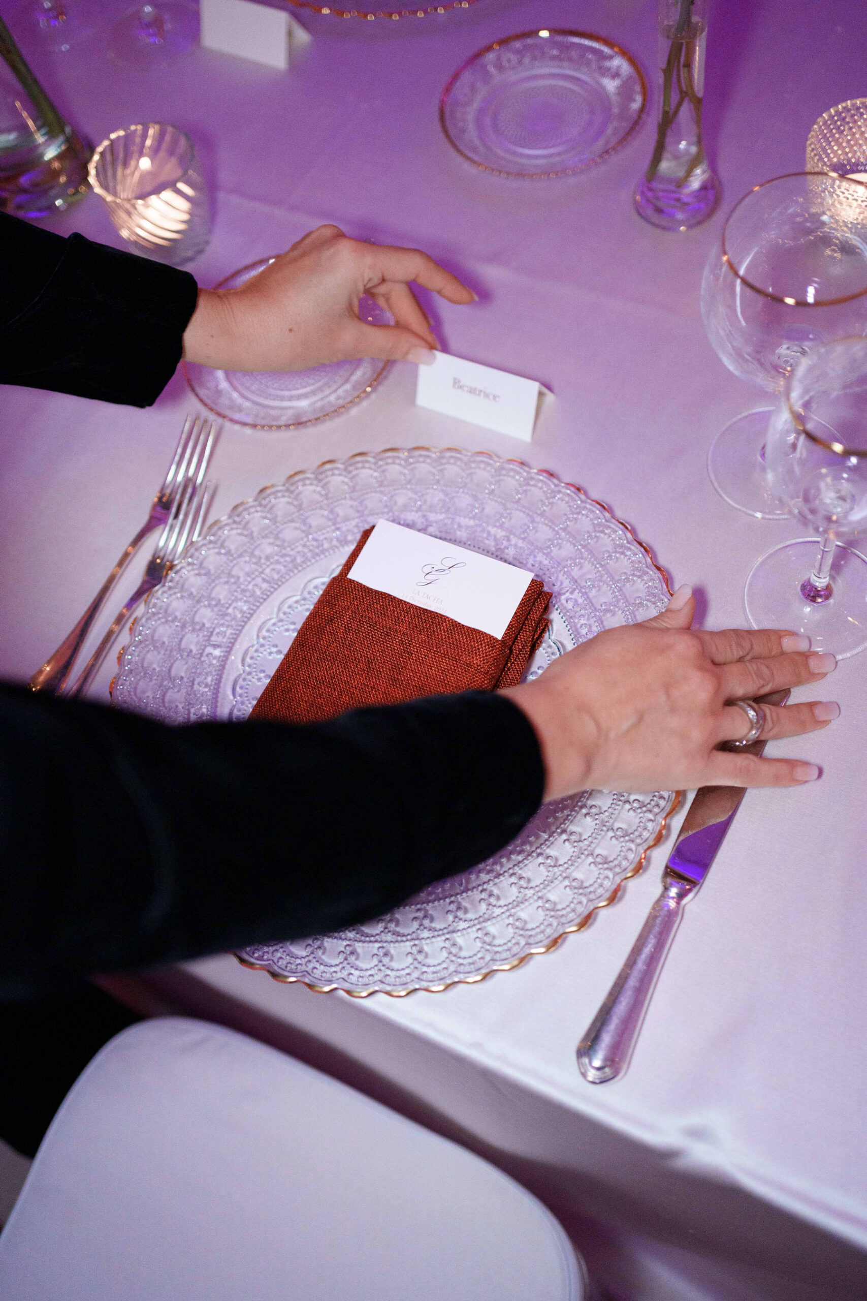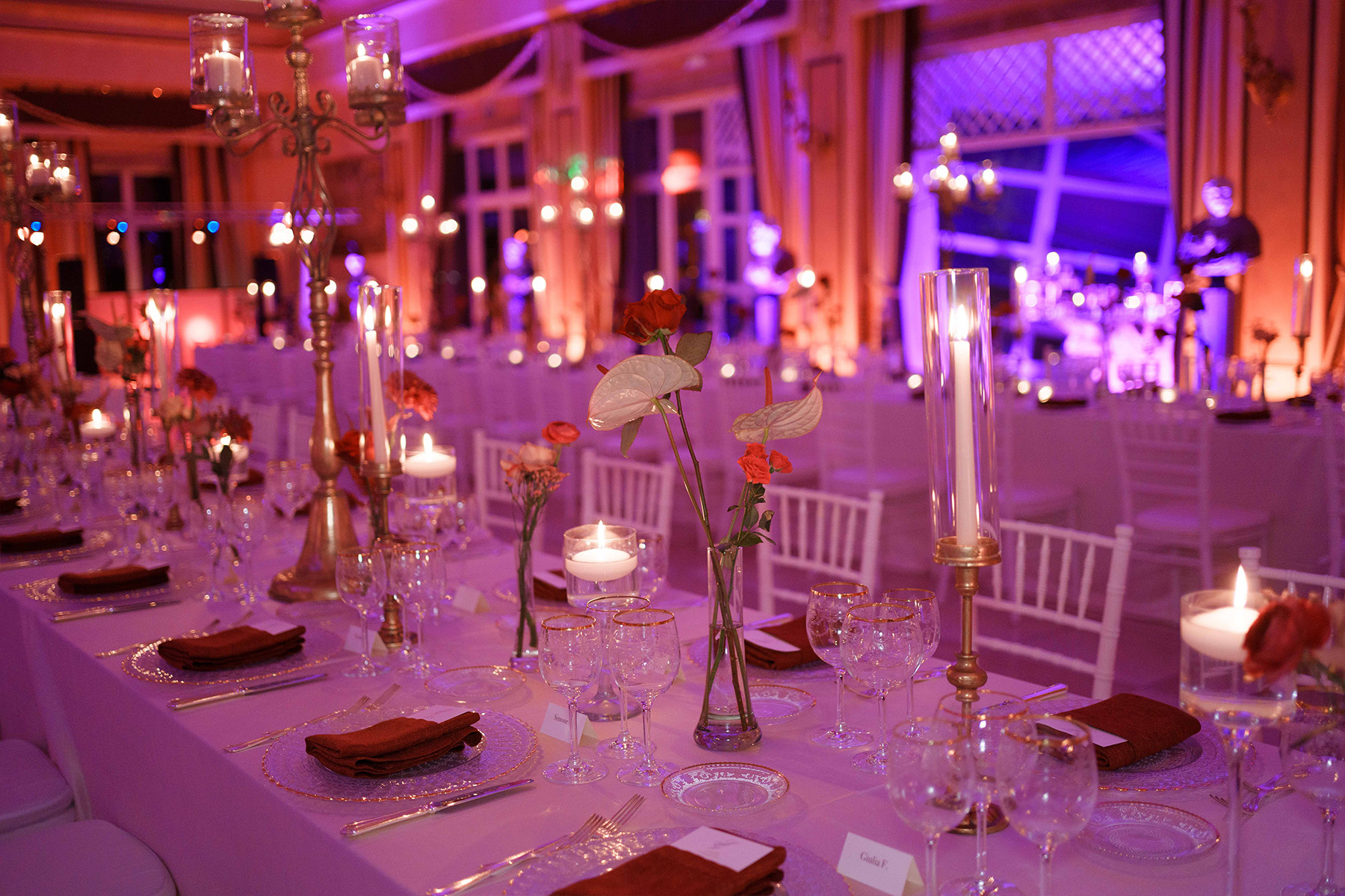 Giorgia e Simone sono arrivati da me con passo sicuro e idee chiare: due avvocati di Rieti, eleganti, belli, complici e profondamente innamorati. Al loro fianco, la madre di Giorgia, discreta e raffinata, capace di bilanciare visione e misura. Il loro desiderio era semplice ma ambizioso: creare un banchetto d’autore memorabile, capace di lasciare un segno indelebile nel cuore degli ospiti. È dicembre e il loro matrimonio in inverno nasce come una favola di Natale, intima e luminosa, perfetta per un’atmosfera da sogno. La sala si trasforma in un ambiente elegante e accogliente: un grande albero di Natale accanto a un camino acceso, luci calde che avvolgono lo spazio, poltrone in pelle e dettagli scenografici che richiamano il calore delle case di montagna e l’autenticità delle feste natalizie. L’accoglienza degli ospiti è affidata a uno show-cooking gourmet: vin brulé preparato al momento, profumo di spezie e agrumi nell’aria, e un’atmosfera di attesa carica di magia. Già dall’ingresso, gli ospiti respirano lo spirito del Natale. La cena prosegue con grande coerenza estetica e gastronomica: tavoli imperiali, candelabri dorati, menu a tema dai sapori invernali, con abbinamenti di vini studiati e serviti da sommelier. Ogni dettaglio è pensato per scaldare, avvolgere e sorprendere. Le luci diventano parte della scenografia, creando un’atmosfera unica. Il momento del taglio della torta è sospeso, quasi irreale, tra giochi luminosi e scintille che incorniciano il loro amore. La festa continua con un buffet di dolci natalizi, torroni, crepes Suzette flambé preparate al momento, dj set e bartender, trasformando la serata in pura gioia condivisa. In quella magica notte di dicembre, Giorgia e Simone erano esattamente dove volevano essere: dentro la loro favola, eleganti, innamorati e luminosi.